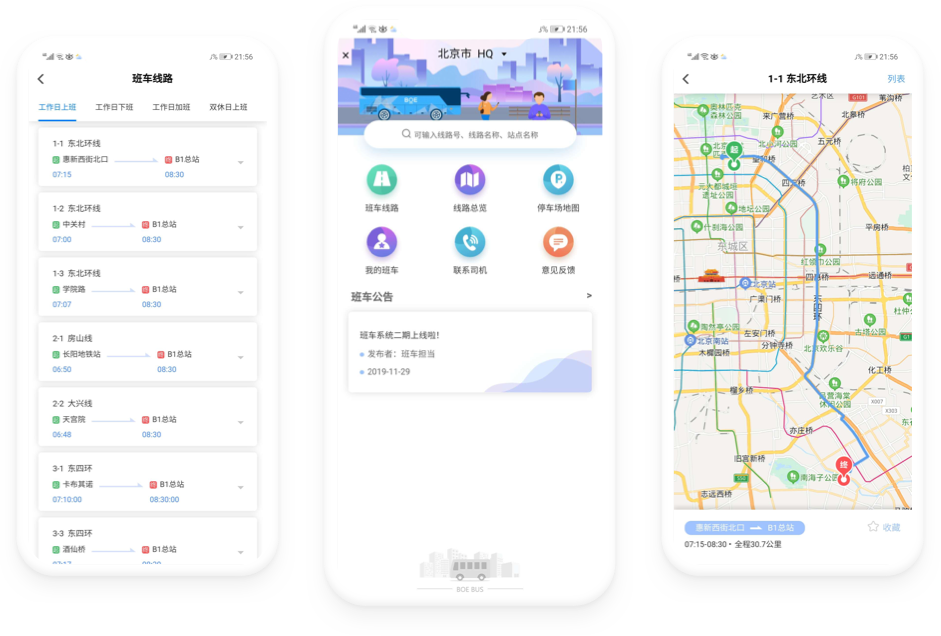 基于智能算法,乘车路线自动推荐,实现班车运营一体化,服务智能化。